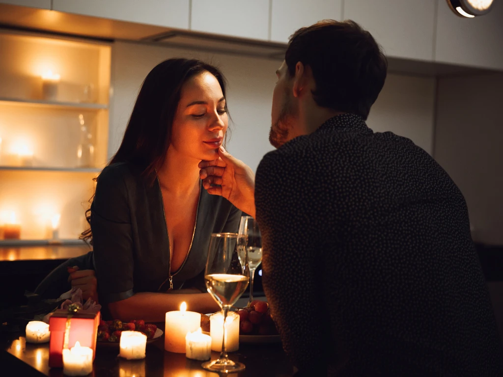 Say it like you mean it, soft voice, slow pace. If your home is loud (kids, TV, life), lower the stimulation first. Dim lights. Put on music. Make the room feel like an exhale.